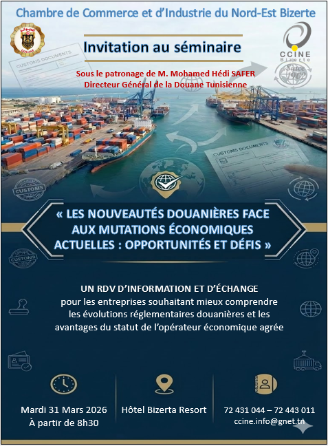 Invitation au séminaire sur : Les nouveautés douanières face aux mutations économiques actuelles : opportunités et défis