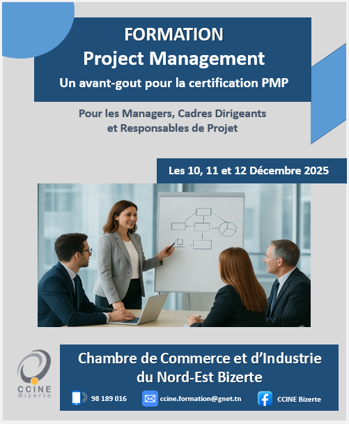 Consciente des défis actuels en matière de compétitivité des entreprises et du besoin crucial de renforcer les compétences individuelles et dans le cadre de son programme estival 2025, La Chambre de Commerce et d’Industrie du Nord-Est Bizerte lance de nouvelles sessions de formation, en plus de ses cours de langues habituels (anglais, russe, turc, allemand, chinois et italien), notamment dans les domaines suivants :